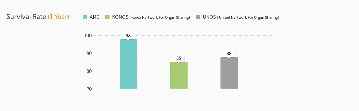 AMC’s Liver Transplantation Center, with disregard to the number of surgeries, has strengthened its outstanding position in treatment outcomes and survival rates for each type of organ transplantation; all the meanwhile, strengthening its efforts in continuous research and experiments and advanced training programs. The center will strive to concentrate on treatment, research, and training to achieve increased survival rates and better treatment outcomes.