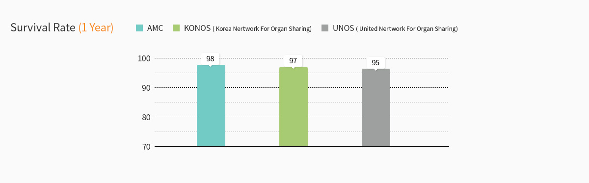 AMC’s Liver Transplantation Center, with disregard to the number of surgeries, has strengthened its outstanding position in treatment outcomes and survival rates for each type of organ transplantation; all the meanwhile, strengthening its efforts in continuous research and experiments and advanced training programs. The center will strive to concentrate on treatment, research, and training to achieve increased survival rates and better treatment outcomes.